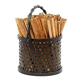 Looks great, sturdy, well made. I've been using it for a while now and it still looks good. No rust, no corrosion. The perfect size to sit near our fireplace hearth. The bucket itself is about 5 1/4 inches tall (about 10 1/2 inches if you leave the handle upright) and about 6 1/2 inches wide, and comes packed with flatwood. Makes starting a fire so much easier. Fast shipping. Good purchase.