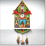 I was so excited to find this clock on Amazon because it sold out at Avon. It's very festive and kept good time, but every hour on the hour my family jumped out of their seats because the first thing you hear is Santa's door flying open very loudly. It sounds just like the living room door being flung open. And it's LOUD. Then there is one song that is so off. It sounds like someone from China who never heard this Christmas carol threw a lot of wrong notes in there. My 14 year old cheered when we put it away for the year.I LOOOOOVE this clock--in fact it is still hanging up in the kitchen! It will make you happy and SMILE when Santa pops out of the cukoo window!!!