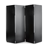 one panel was scratched and bent a bit on shipping. hinges hold each panel apart slightly (probably not a bad idea to let some air in the to firebox while the coals die down. heavy and seems solid. you will need something of weight to hold it to the face of the fire box-like a heavy screen