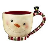 Absolutly adorable mug I enjoyed all through winter. Tucked him away and will reuse next year. Everyone loved him...sweet face, scarf base and handle topped off with is cut black hat. Felt cozy, not frosty while enjoying my hot toddies :D