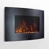 I could't be happier with this contemporary, very attractive fireplace--I replaced the stones provided with river rocks that I had and it blended in perfectly with my existing decor. It is quiet enough and gives off apply heat for my 12 by 13 space. A bargain at this price, in my opinion.I heat my house with wood and have a wood stove (that has glass door) and a fireplace. For me there is no other way to get warmreal wood is the best. I built my man room by cutting off part of my garage and I have all the manly stuff one could want (big tv, bad ass music system, bar, reclining chair, etc...) so when my mother in law suggested that I put in an electric fireplace below the tv, I was really skeptical! She has really good instinct for style and decoration, and I trust her advice all the time. I settled on this electric fireplace mostly because of it's looks. Now that it's in, it's really pretty cool! It puts off good heat, and I would of given it 5 stars, but it is a little noisy. I think someone else reviewed that noise as "crackling", but it's notit's the fan turning. The flames look fake, but, for what it is it's really cool.