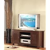 This is a very nice looking tv stand that perfectly matches my living room furniture. It's easy to put together and very sturdy. It has plenty of shelving for the av components as well as hidden shelves for more storage.I highly recommend this item.