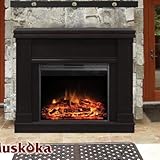 I bought this w/out any reviews; which I never do, however it looks as good as or better than the picuture. The fireplace insert is bigger than most I've reviewed and the flame is fairly real looking. puts off a lot of heat too. The finish is truly a dark espresso.